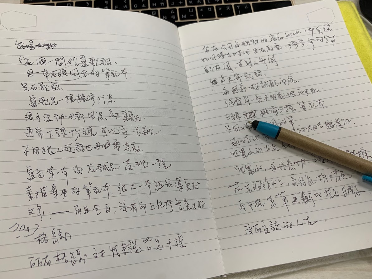 可越來越多時候只用電腦,筆記本們放在書包裡也不想拿出來,或是,在無聊的中文系課堂上,直接在畢業後應該不會再翻開的《昭明文選》上寫歌詞或是詩?在寫字之前還得先確認「載體」的形式很無可救藥沒辦法我是控制狂。