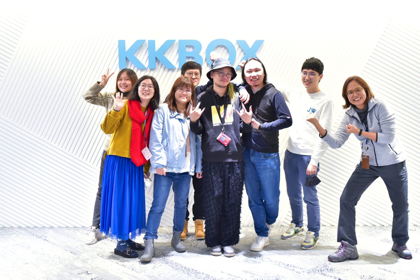 我們終究走到這裡,在這顆 Logo;「KKBOX」前面,練習微笑並拍一張照