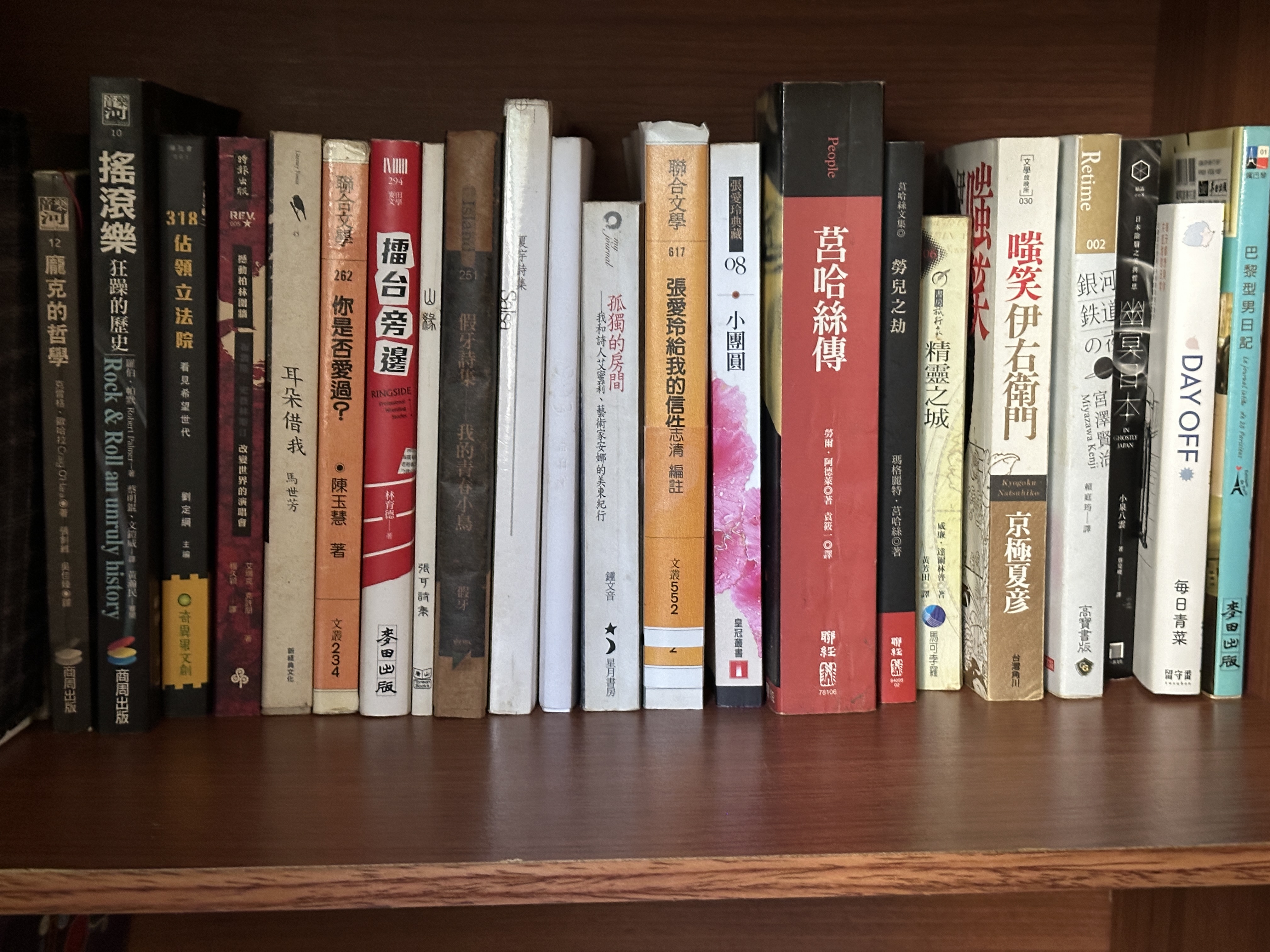 - 看完之後會也想寫點字的,所以莒哈絲和張愛玲的書信集都留著,柳美里大部分的書也丟了,只留下《命》……但,這些都沒有關係,需要時,買電子書即可,沒事。