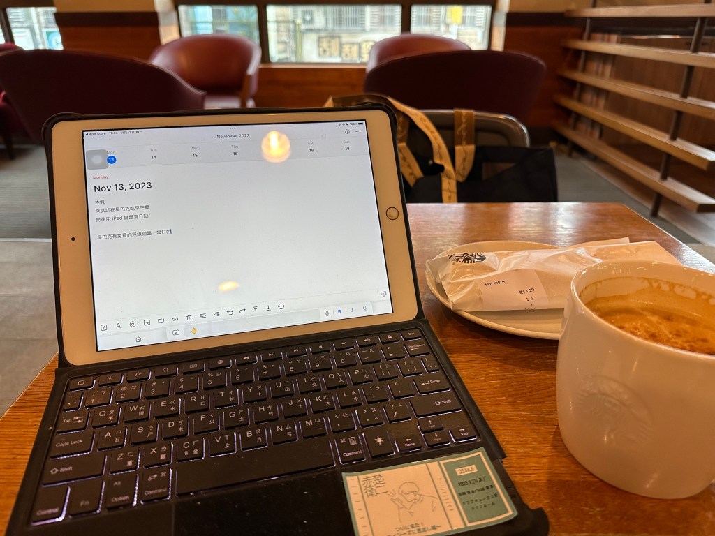 可以坐在書房寫字,也可以帶著貼有兒子赤楚衛二粉絲見面會貼紙的 iPad + Keyboard ,在任何地方隨時打開 Heptabase 寫日記,更可以進一步把日記的某個片段另外開成卡片,並歸類到適合的「白板」裡 —— 產品 PM 很需要白板來蒐集、發散、收斂與歸納所有想法與 task,就算是寫小說,也需要這套邏輯來建立故事架構。
